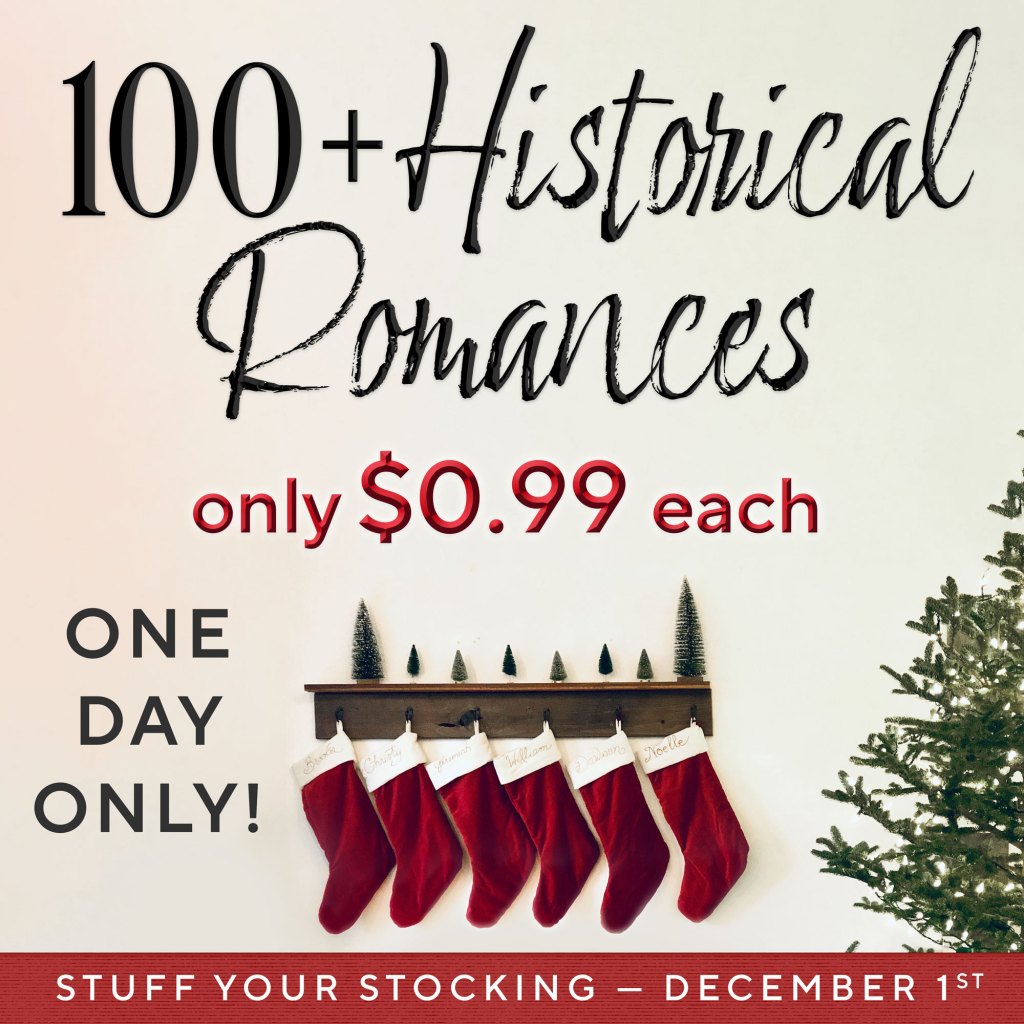 For today only–December 1, 2023–over 100 historical romance ebooks are priced at $0.99 each, including Kissing by the Mistletoe! Regencies, Edwardians, and even historical American Westerns, from steamy to sweet there’s something for everyone ![]()