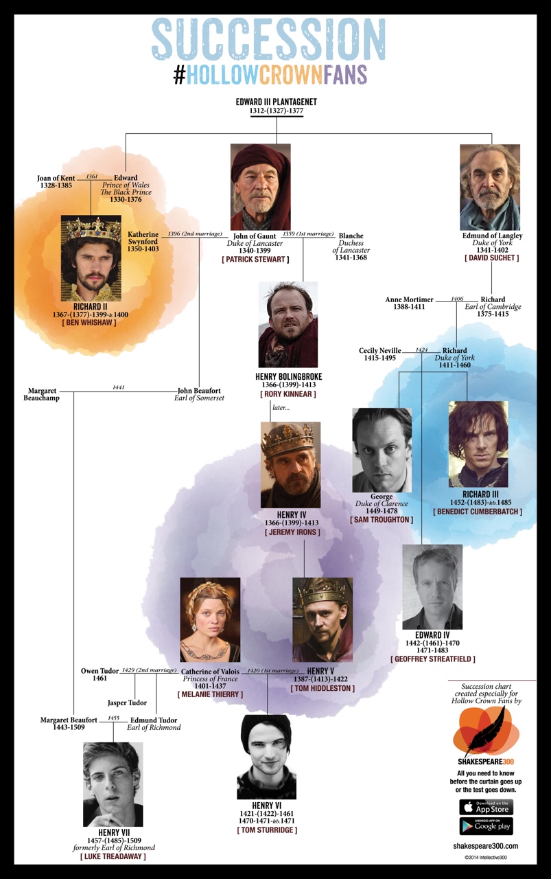 This week’s Favorite combines film with history. From Hollow Crown Fans, I present The Plantagenet family tree: Wars of the Roses collection, staring the actors from The Hollow Crown series. And I can now say that I’m descended from Patrick Stewart 😉